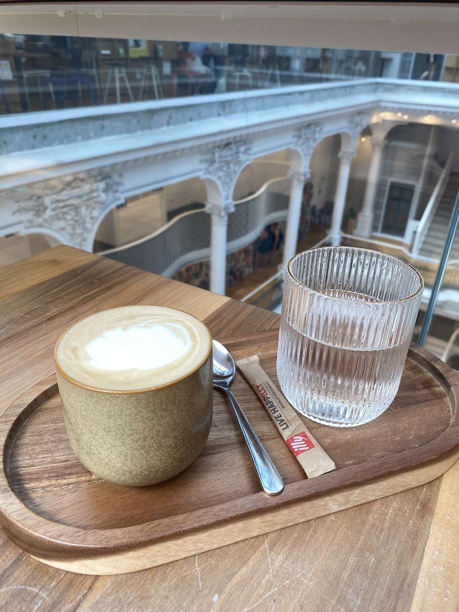 As you step inside, the café emanates an inviting warmth, with its beautifully designed multilevel space that harmoniously merges a bookstore, a souvenir shop, and a café. The upper deck is particularly enchanting, offering a lovely spot to unwind with a delicious drink. The elegant decor is complemented by a thoughtful selection of books, puzzles, and games, making it a haven for families and avid readers alike.
